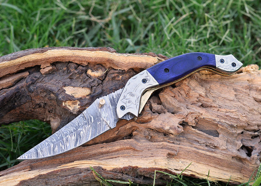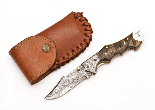 Damascus Knives |Seeker's Blade Folding Damascus Knife