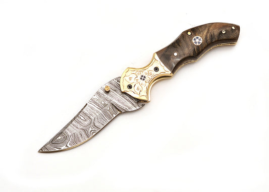 Silverwood Serenity Ram Horn: Damascus Folding Camping Knife-tool