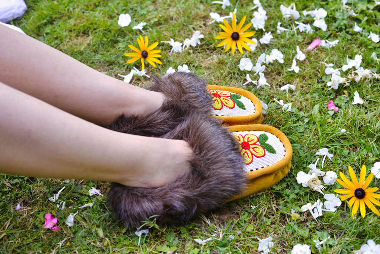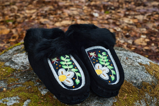 Ladies Beaded Moccasins with Intricate bead-work and Fux Fur | OnlyViking