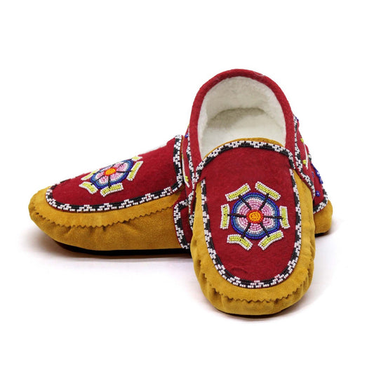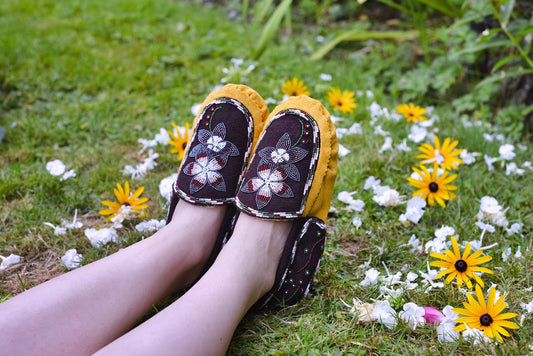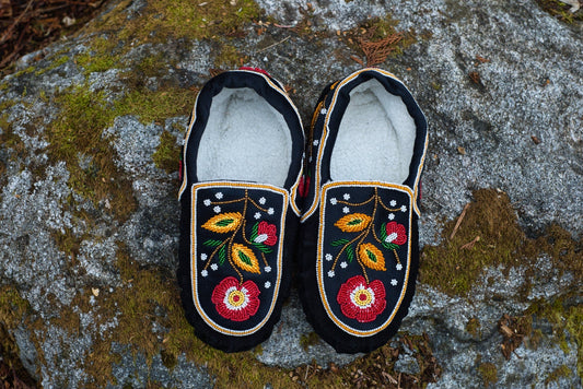 Our Beaded Moccasins is a work of Canadian art that brings elegance and tradition into your home. Each pair is thoughtfully handmade by skilled artisans, with hours devoted to creating the detailed beadwork and ensuring precise construction. These moccasins patterns are more than just slippers they're a statement of quality and care.
