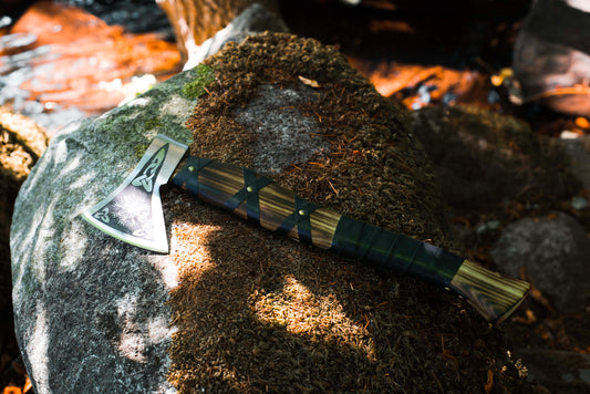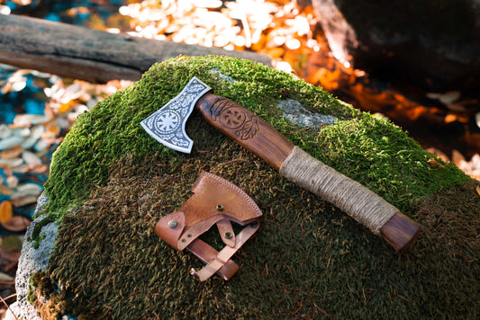 Explore the collection of hand-forged Viking axes, meticulously crafted in carbon steel for collectors. Our collection features an impressive range of Viking axes, from heavy-duty wooden axes with wide blades to francisca-style throwing axes. Whether you need a functional piece for display, or historical reenactment, we have an axe to match your needs. We even offer axe heads with 2mm edges, ideal for safe use in reenactments