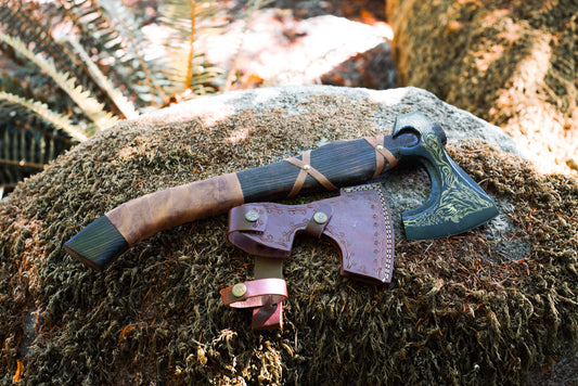 Burnt Wood Axe Brown Leather Handle | Only Viking