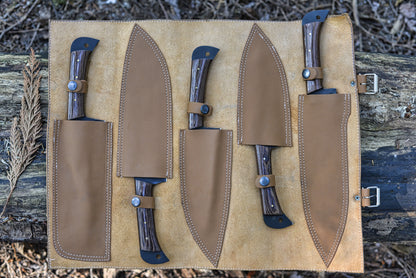 • Includes: For easy transport, the set includes a premium foldable leather case with custom sockets, keeping each knife securely in place. Compact and stylish, it’s perfect for both kitchen use and on-the-go catering or events.