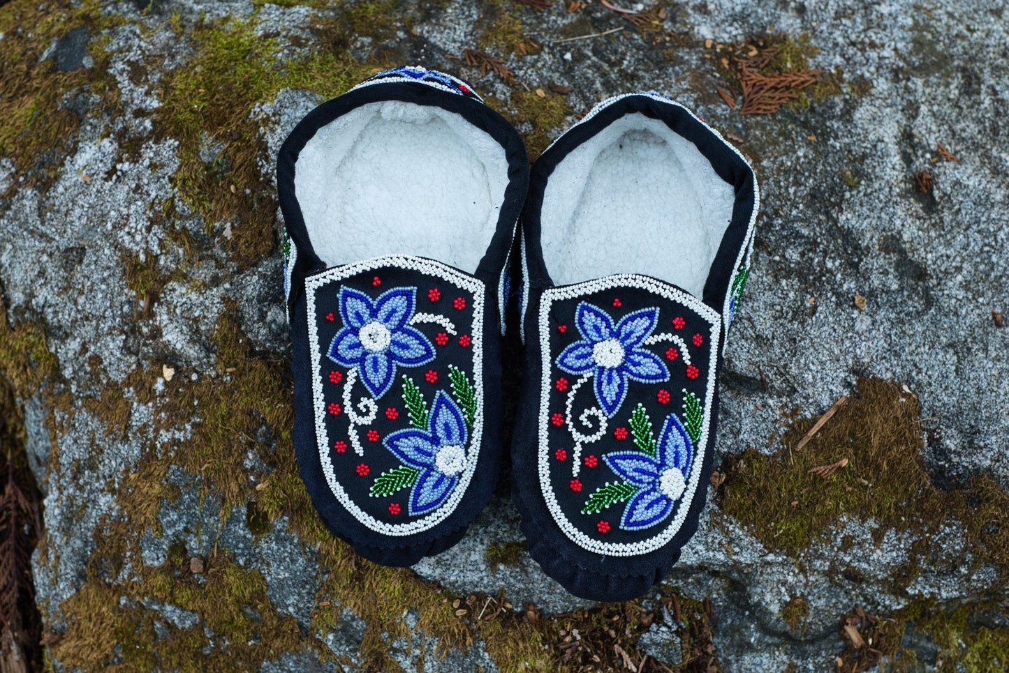 Handcrafted with perfection, each pair requires a total of 6 hours of work, with 3 hours spent on beadwork and 3hours on cutting, shaping, and other details. The result is a truly unique and stunning pair of moccasins that are sure to turn heads.