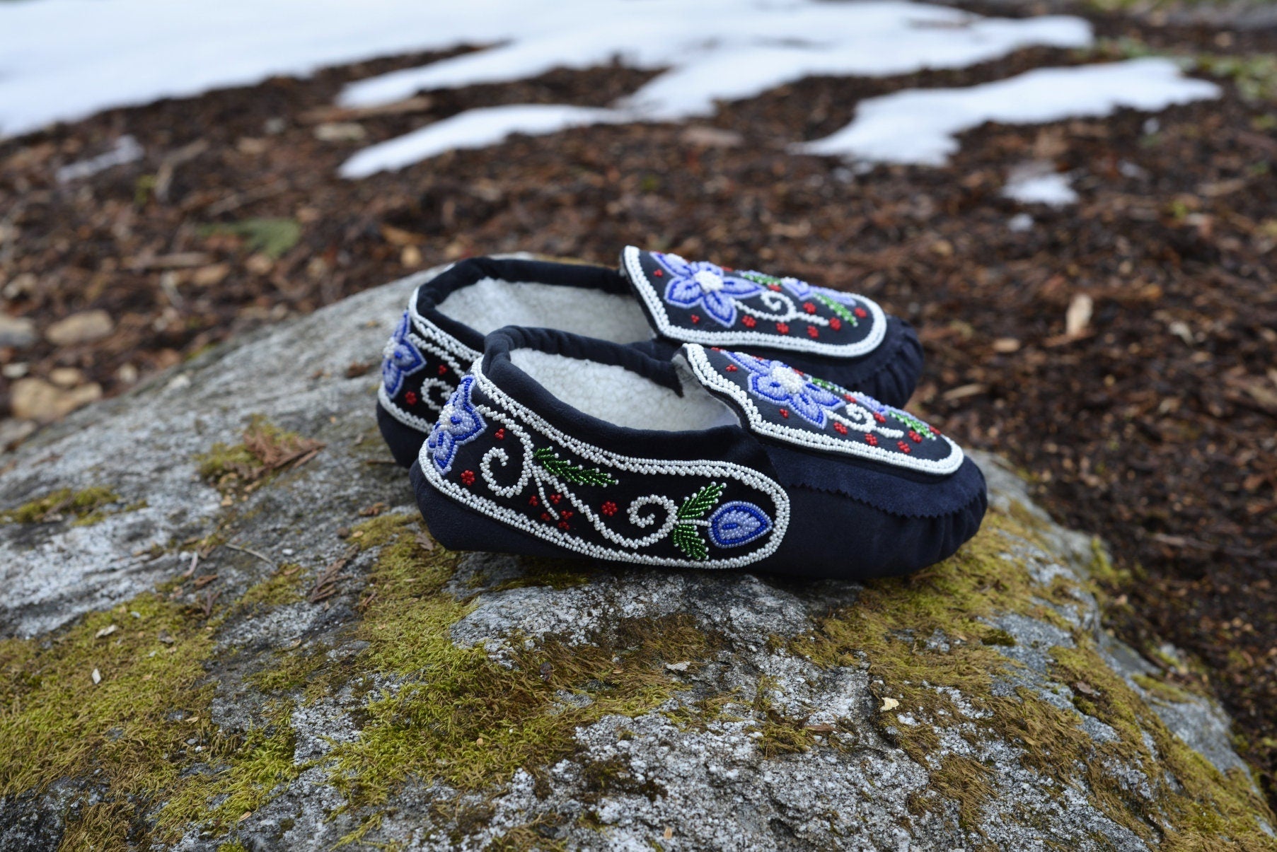 Step into style with these meticulously crafted hand-beaded blue moccasins. Each pair is carefully crafted with precision by highly skilled artisans, ensuring that you receive a product of exceptional quality.