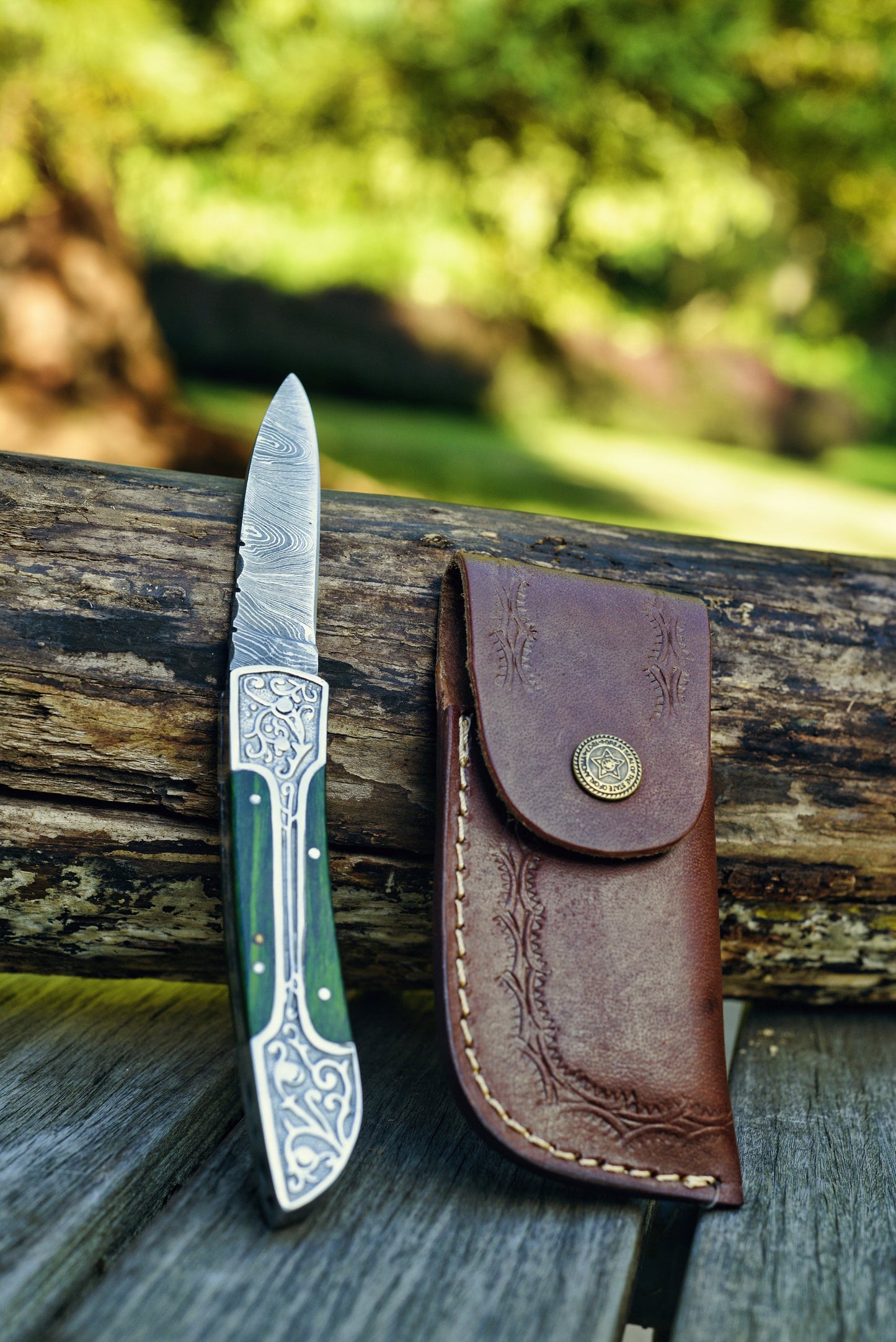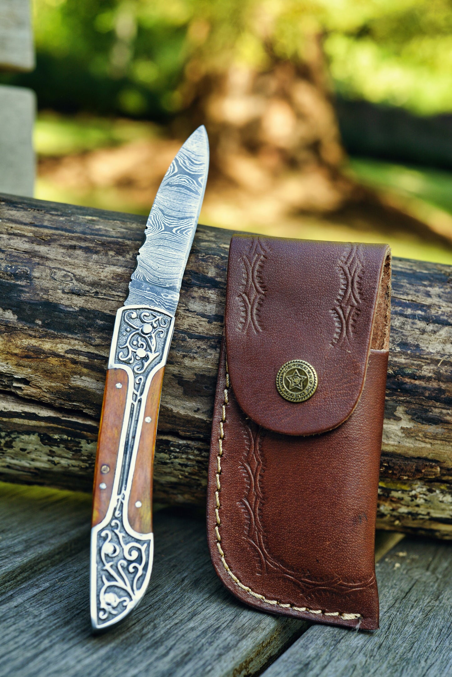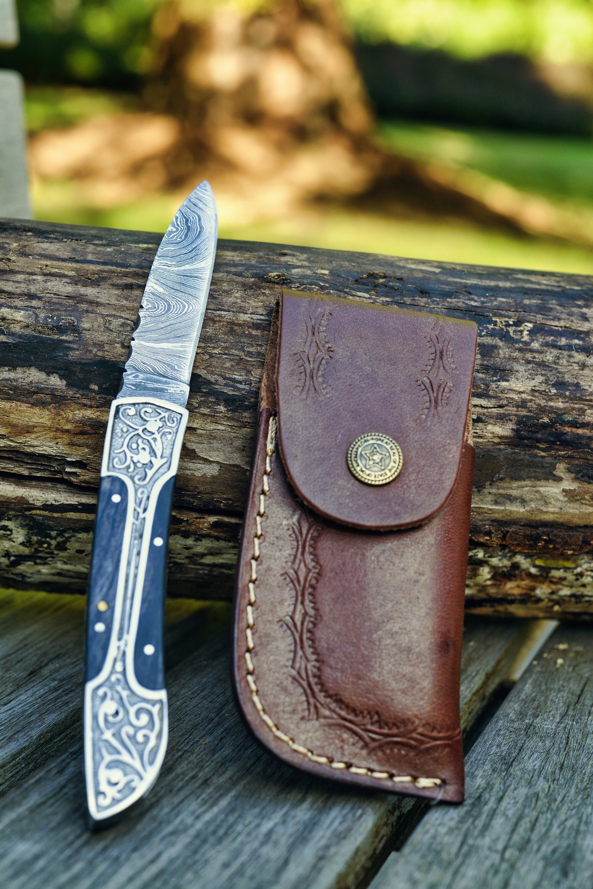 Each knife comes with a durable leather sheath for safe and convenient carrying. For an additional touch of luxury, a finely crafted wooden presentation box can be added at an extra cost. This box can be personalized with custom engravings, making it an ideal option for gifting or collectors who want a personal touch.
