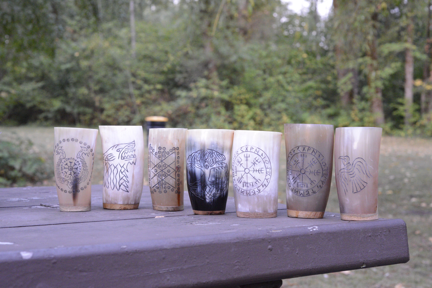 Get your Handmade Viking Drinking Horn Cup directly from our Vancouver workshop. Customers love our quality and return for more. It's a thoughtful gift for Birthday Groomsmen suits all occasions. Select your preferred design from the drop-down menu.
