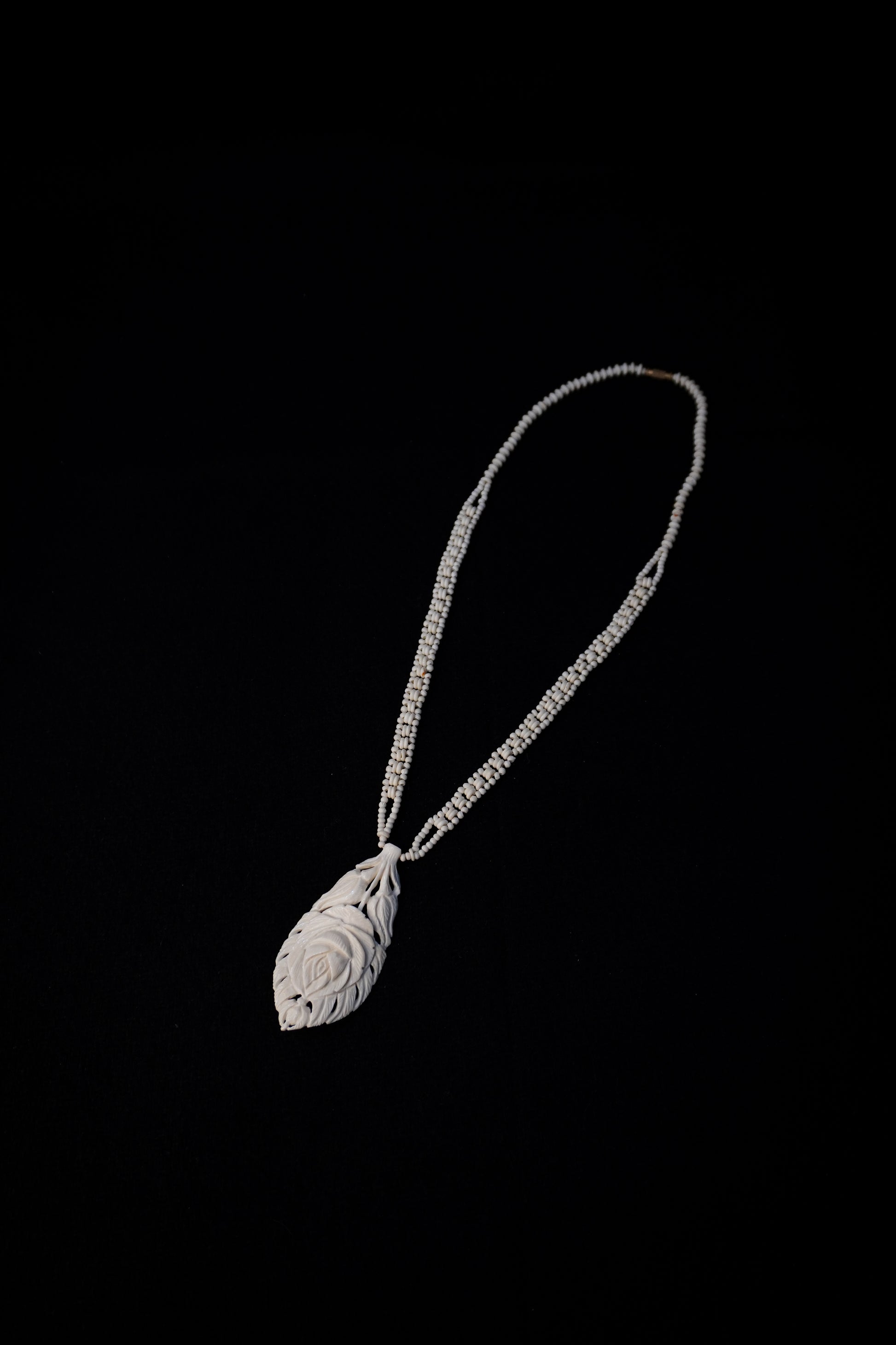 Handcrafted with precision and passion, this exquisite necklace is a testament to the artistry of bone carving. Each delicate detail is meticulously etched into the surface of the bone, creating an intricate pattern that captivates the eye.