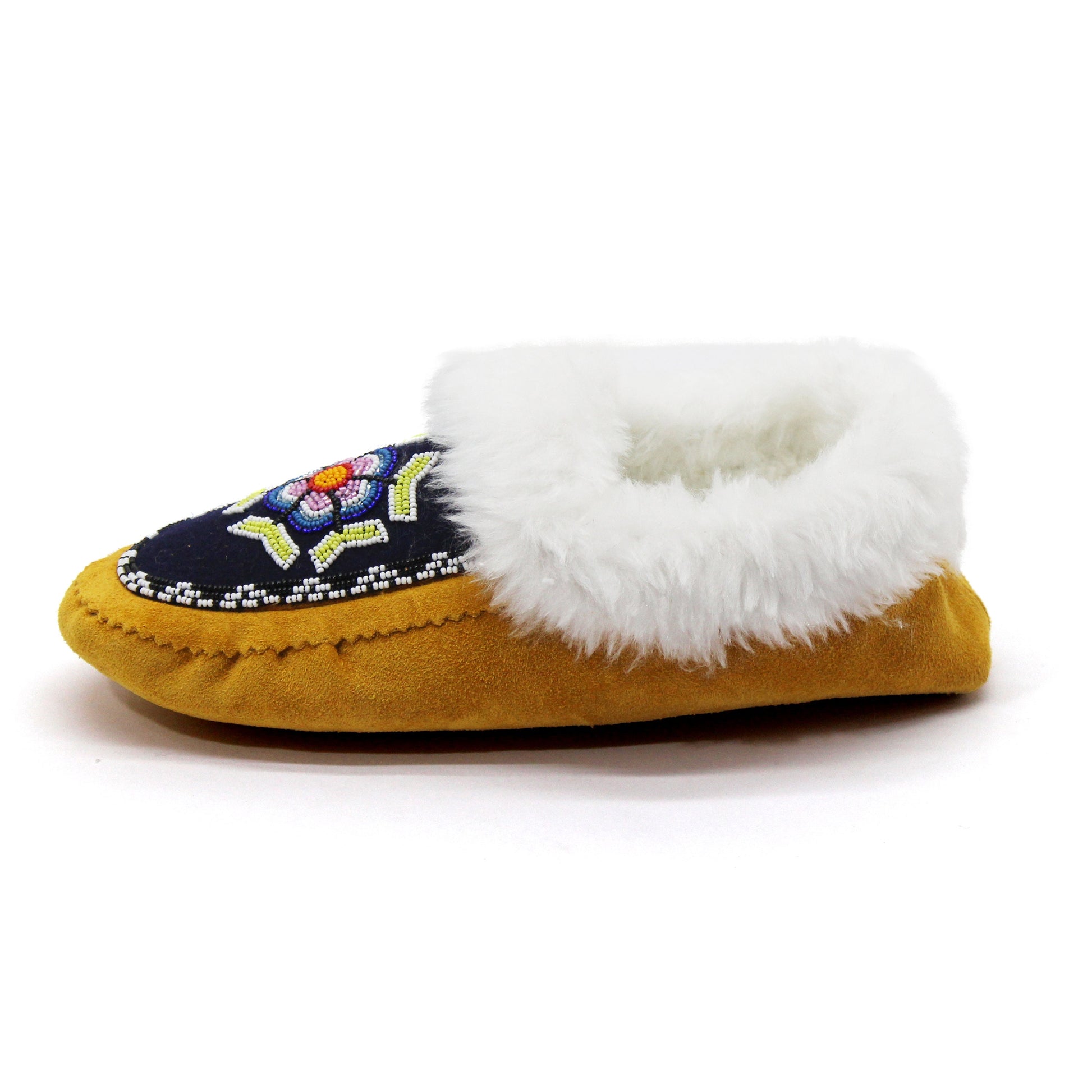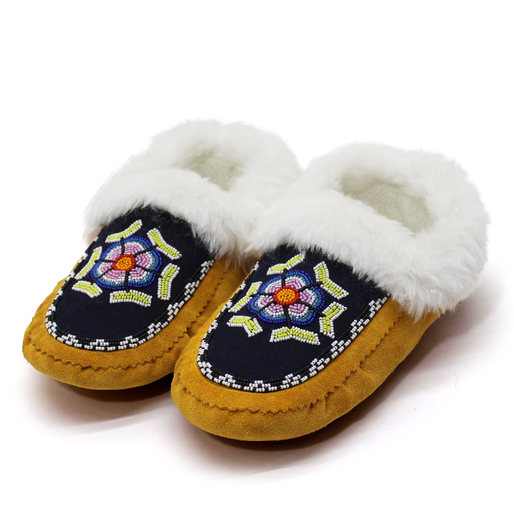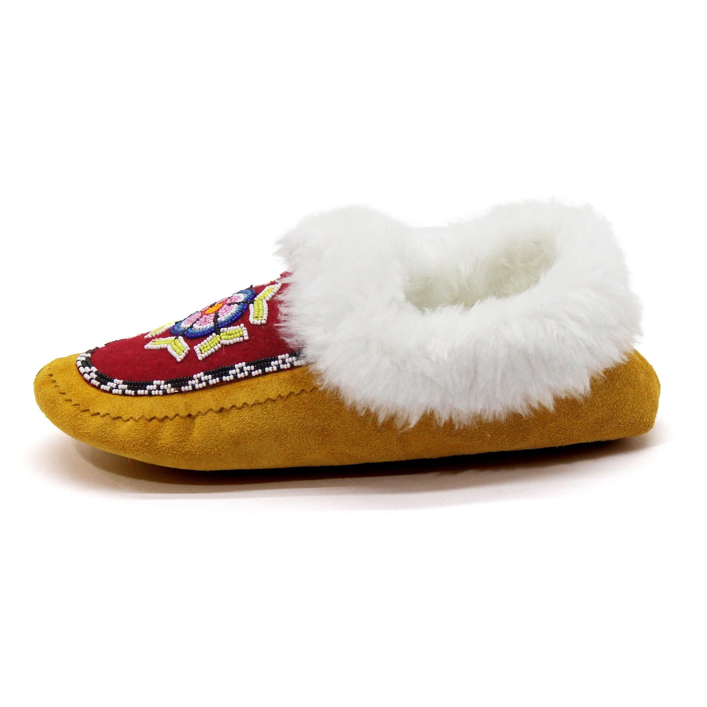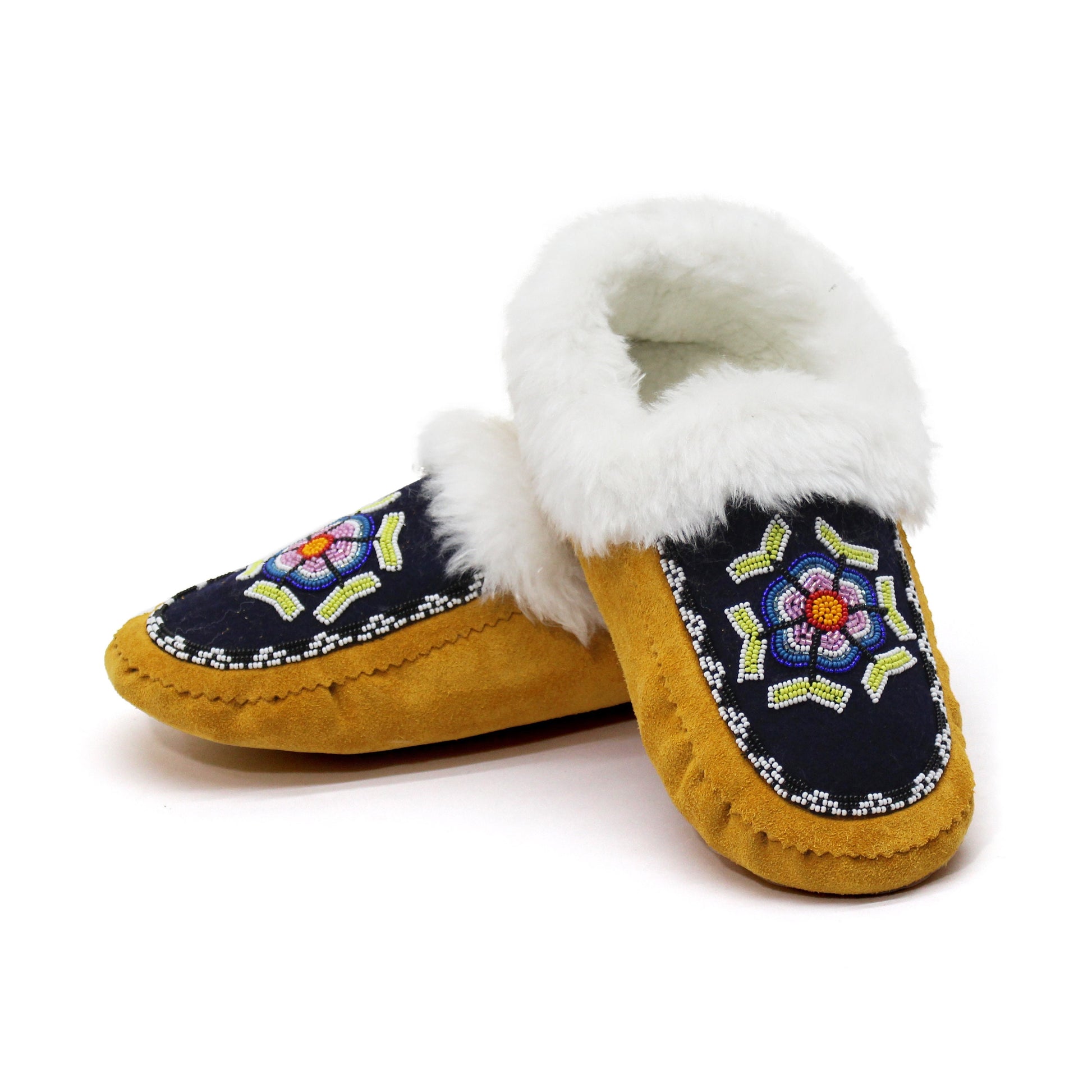 Ladies Beaded Moccasins with Intricate bead-work and Fux Fur | OnlyViking