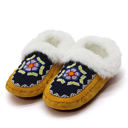 Step into timeless elegance with these beautifully crafted handmade women's beaded moccasins with Intricate bead-work and Fux Fur. Featuring intricate beadwork that showcases exceptional artistry, each pair is a unique masterpiece. The moccasins are lined with plush faux fur, adding a touch of luxury and comfort. Perfect for cozy days or as a stylish statement, these moccasins blend tradition with modern comfort effortlessly.