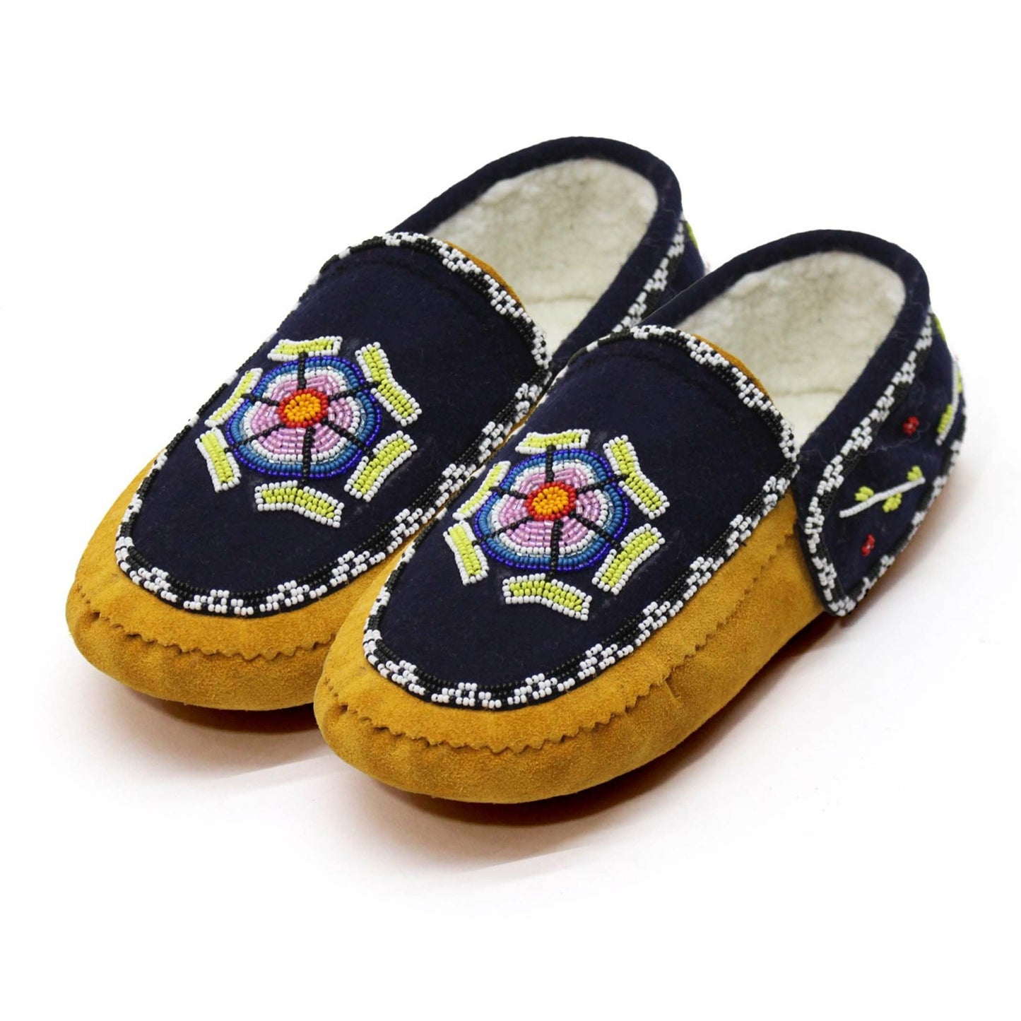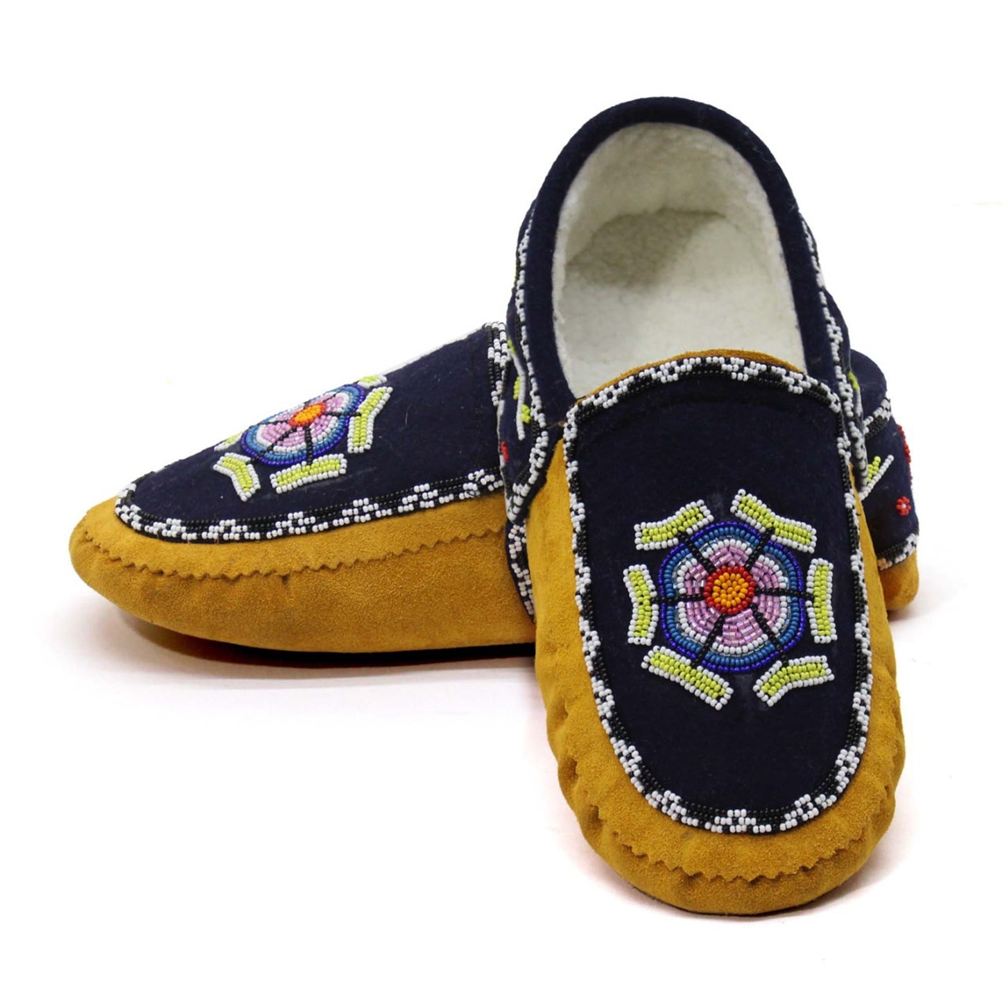 These traditional-style native american women moccasin shoes keep your feet comfortable while being native, stylish, and fashionable. It uses soft and durable moose high leather.