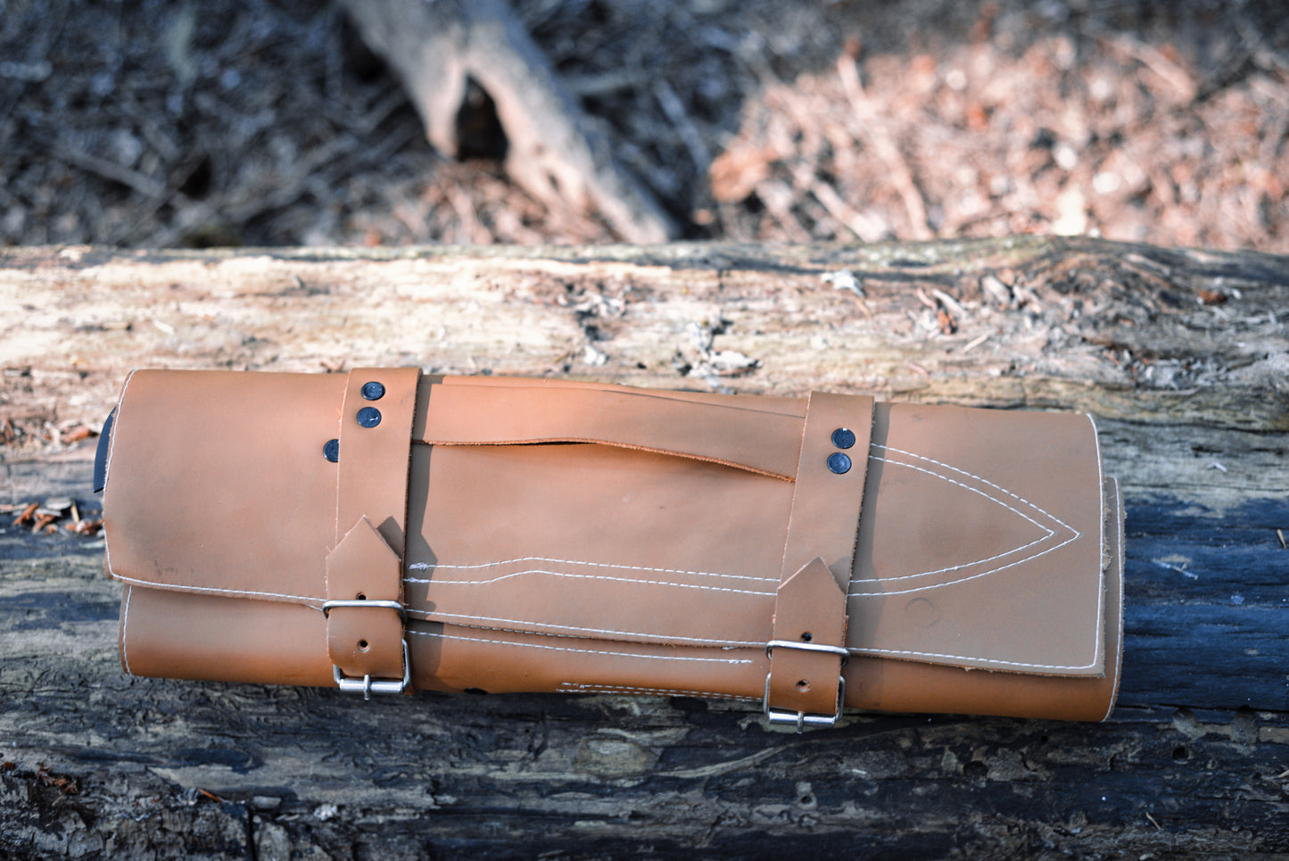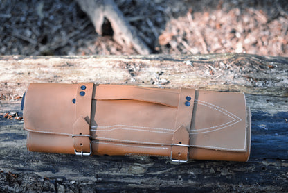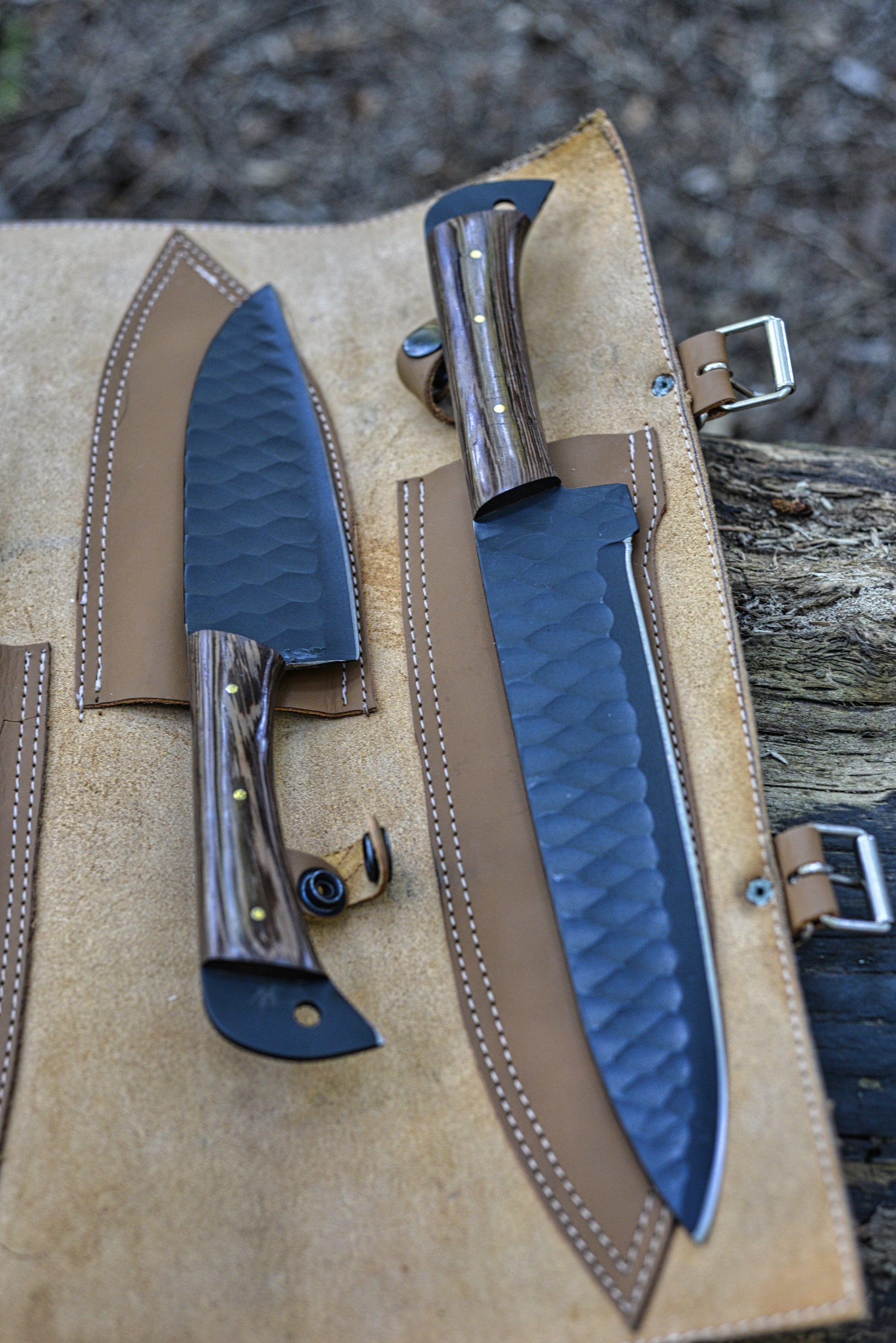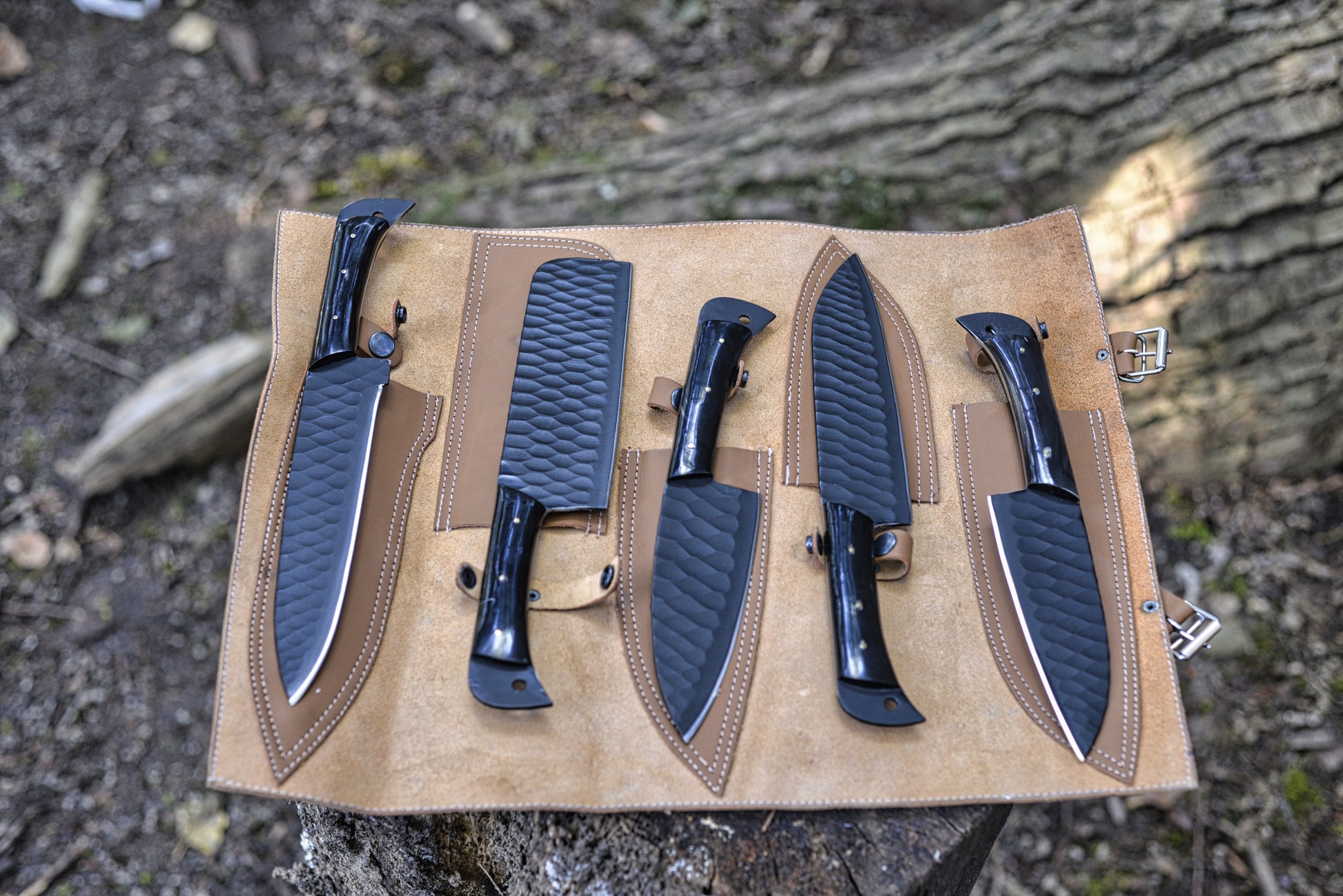 Hand Forged Carbon Steel Chef Set With Genuine Leather Roll Travel Case