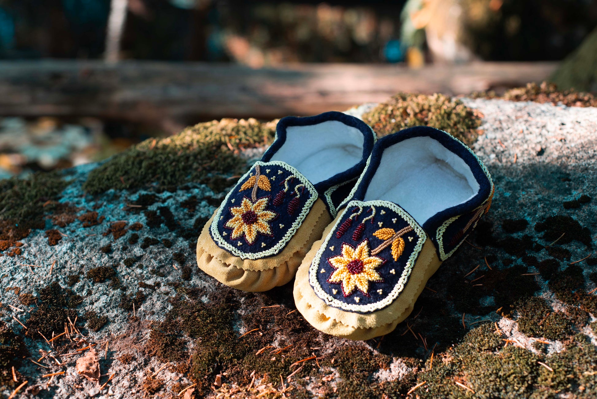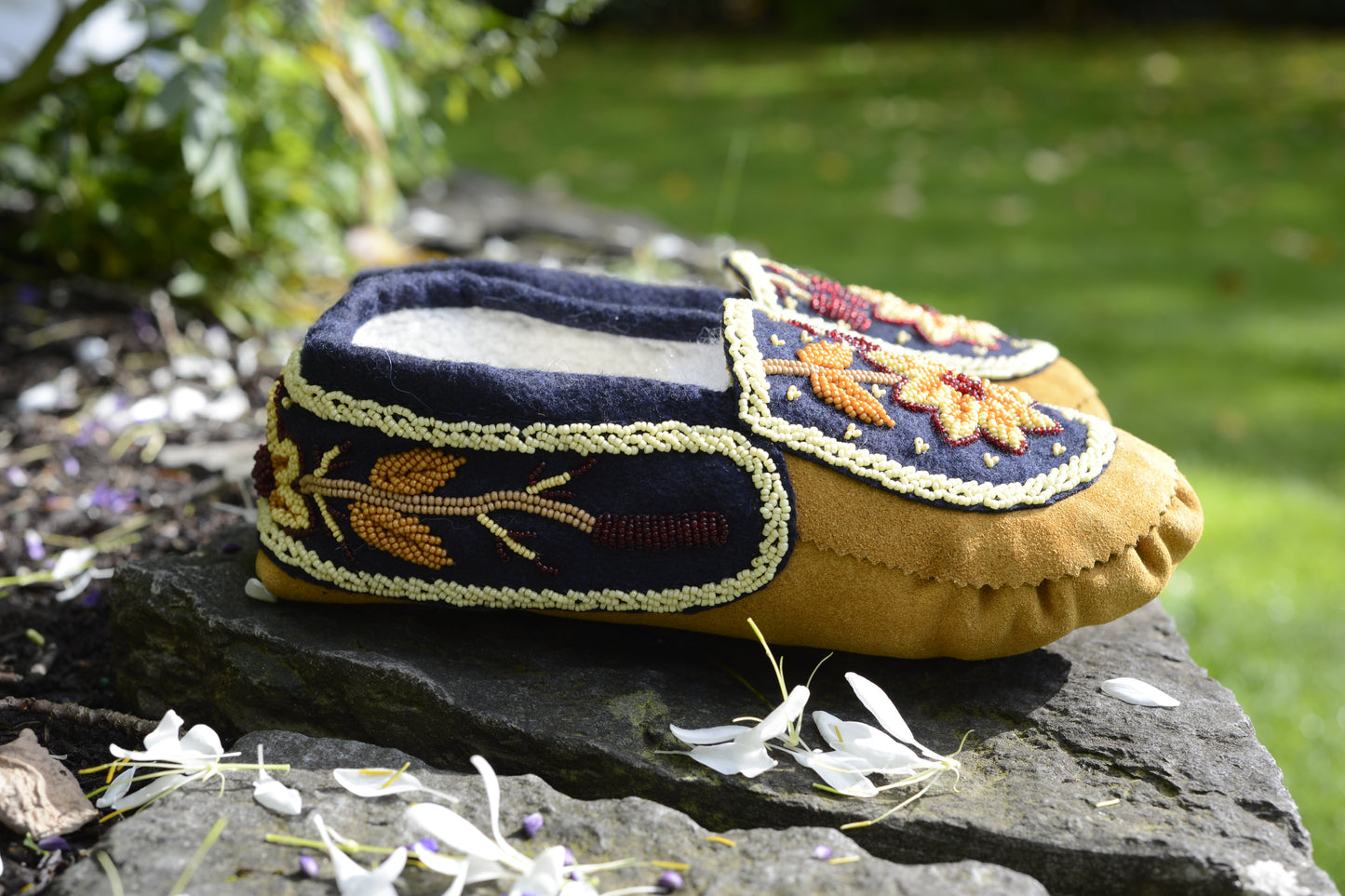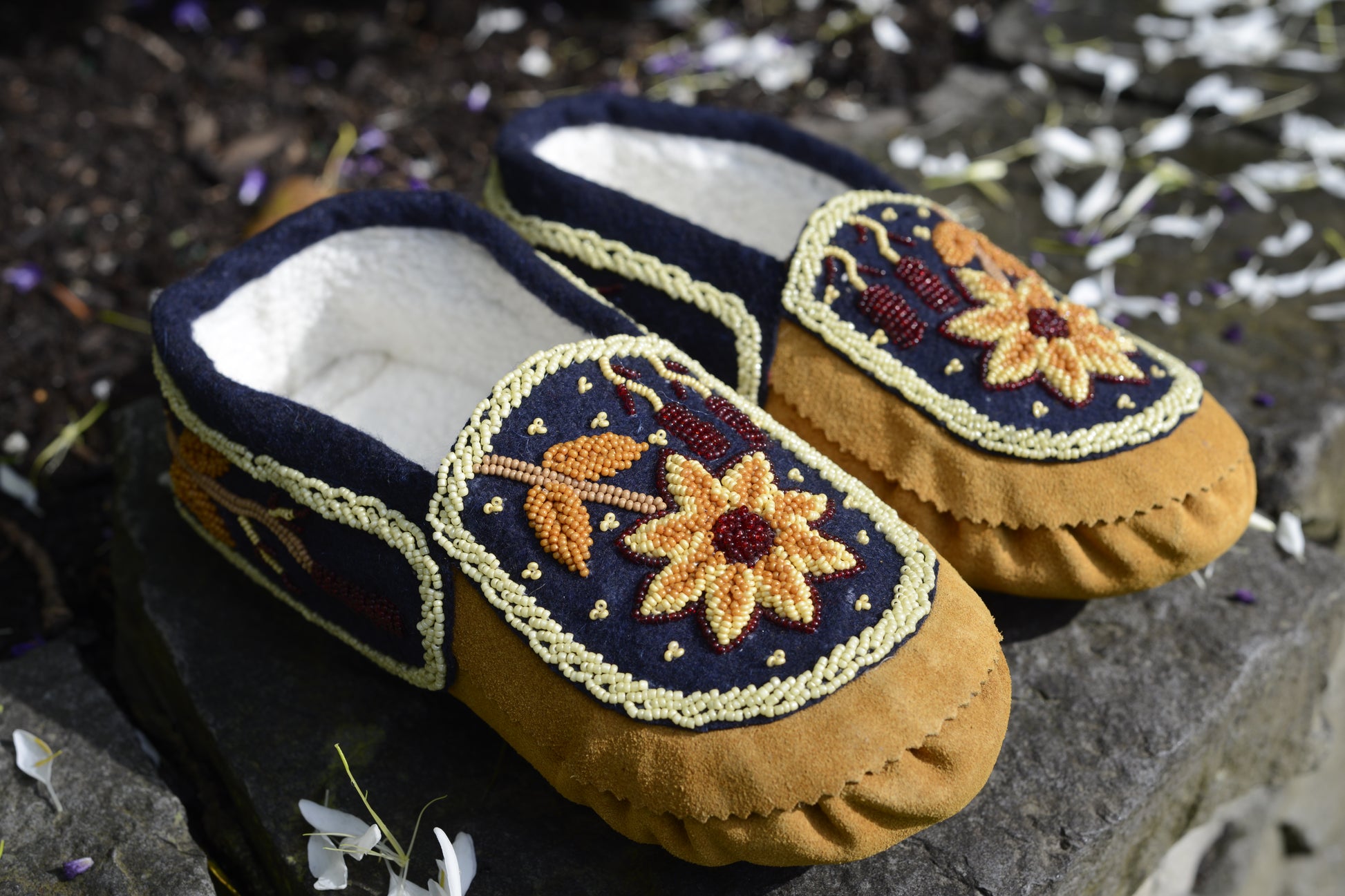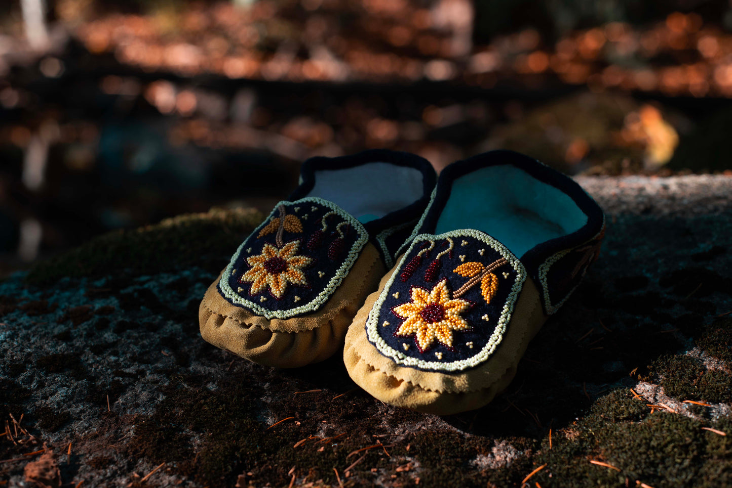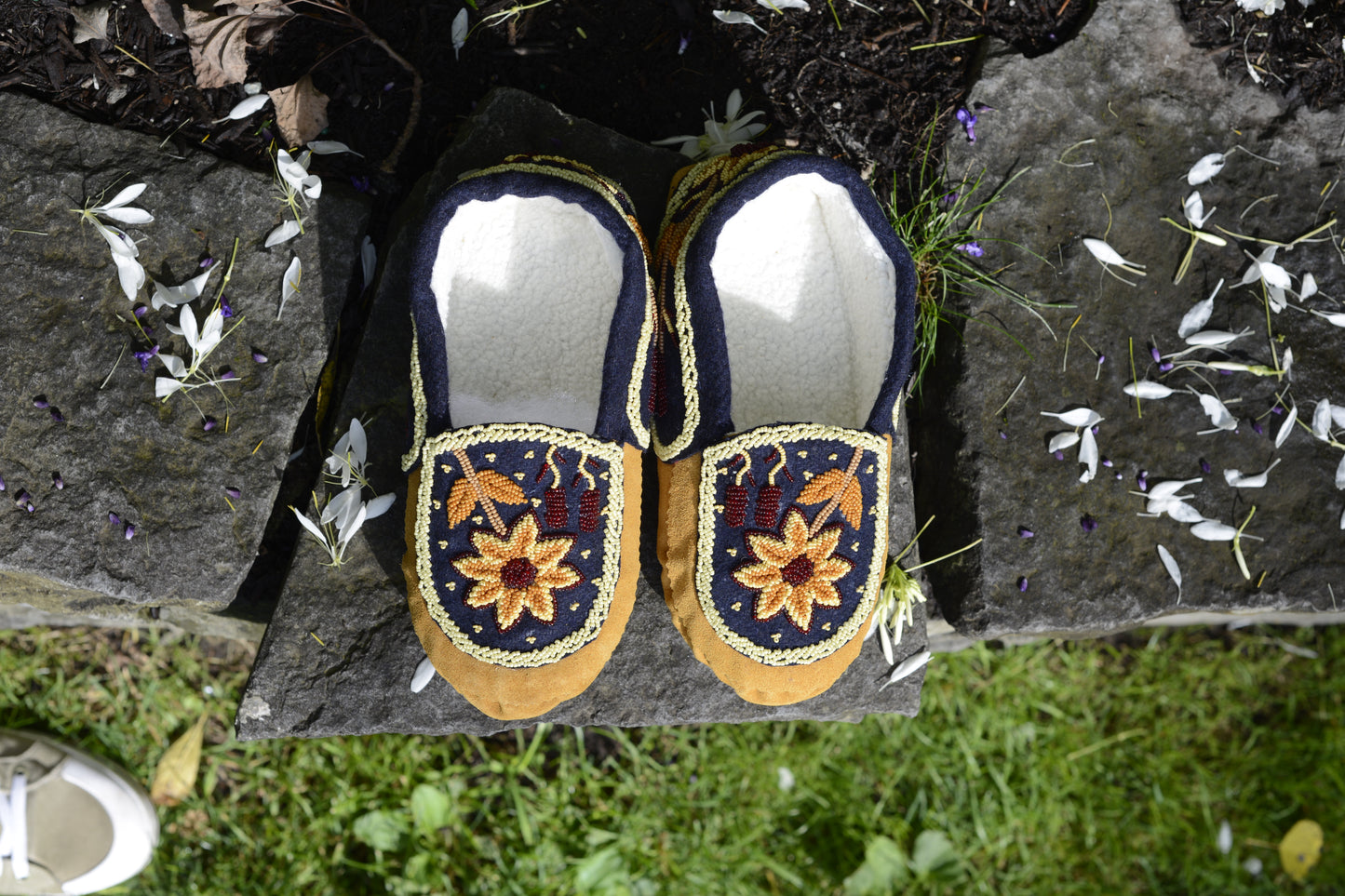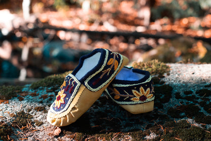 Leather Handmade Beaded Sun Flower Moccasins | OnlyViking