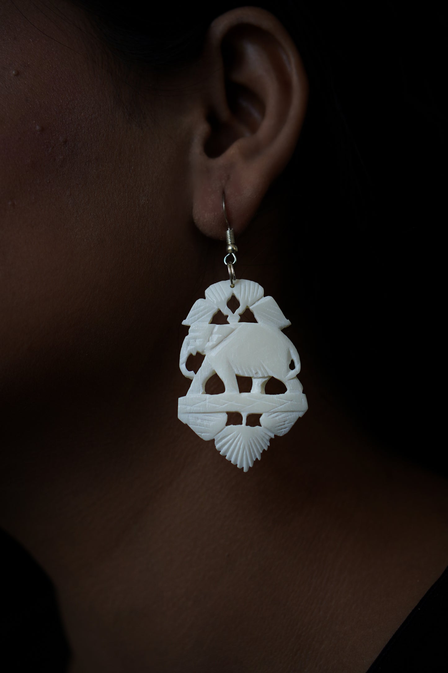 Whispers of Tradition: Artisanal Bone Carved Elephant Earrings
