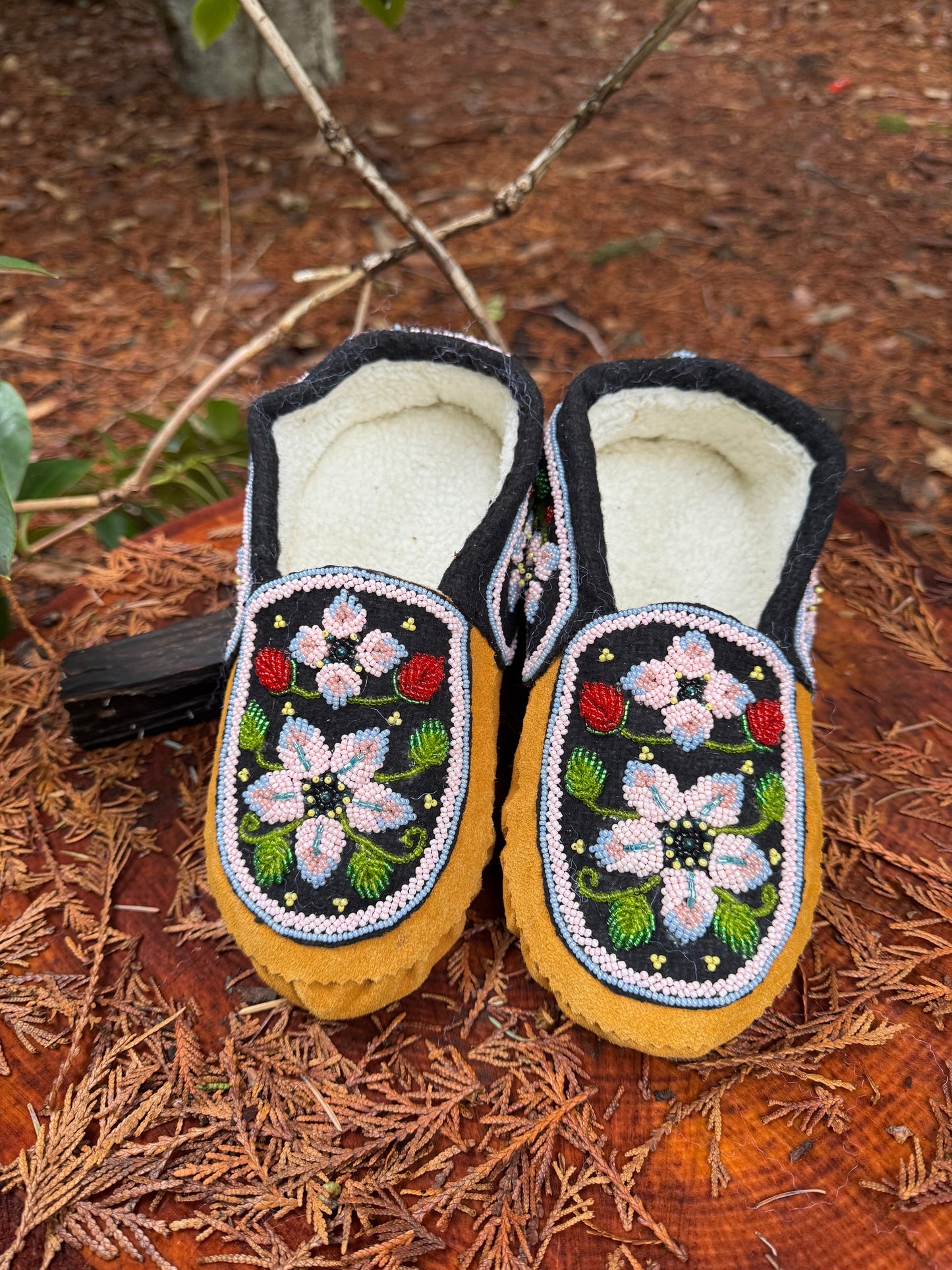 Experience unmatched craftsmanship with these beautifully handcrafted beaded moccasins. Featuring intricate floral beadwork, each pair reflects a perfect blend of tradition and artistry, designed to enhance your everyday style.