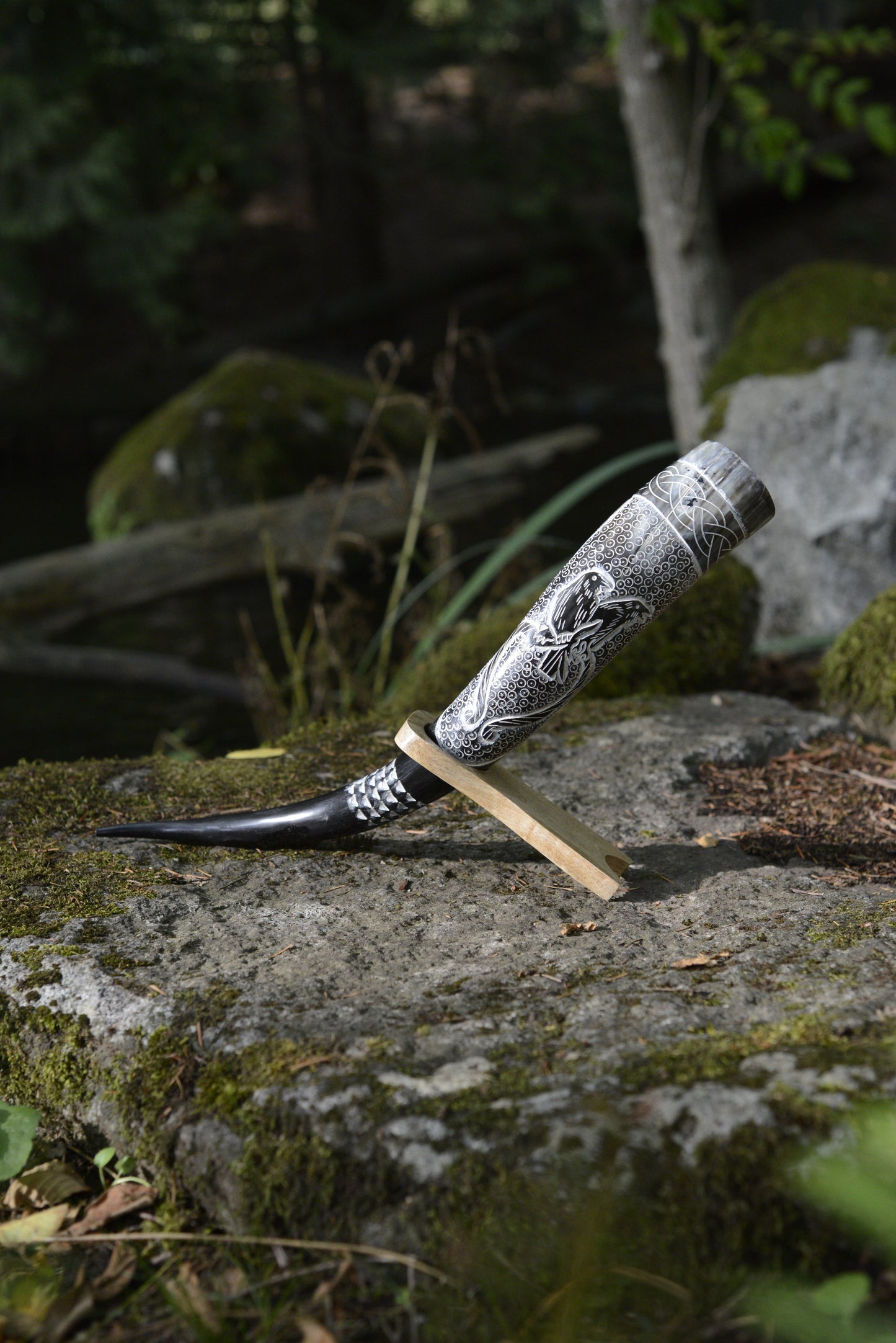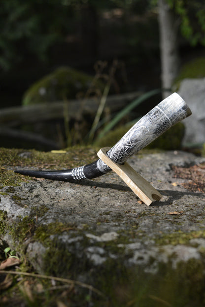 🔥Wooden Stand: Embrace the rustic charm of the Viking era with our wooden stands. Crafted from high-quality wood, these stands not only provide a stable base for your horn but also enhance the overall Viking aesthetic. The natural texture and warmth of wood make it a perfect match for your hand-carved drinking horn.