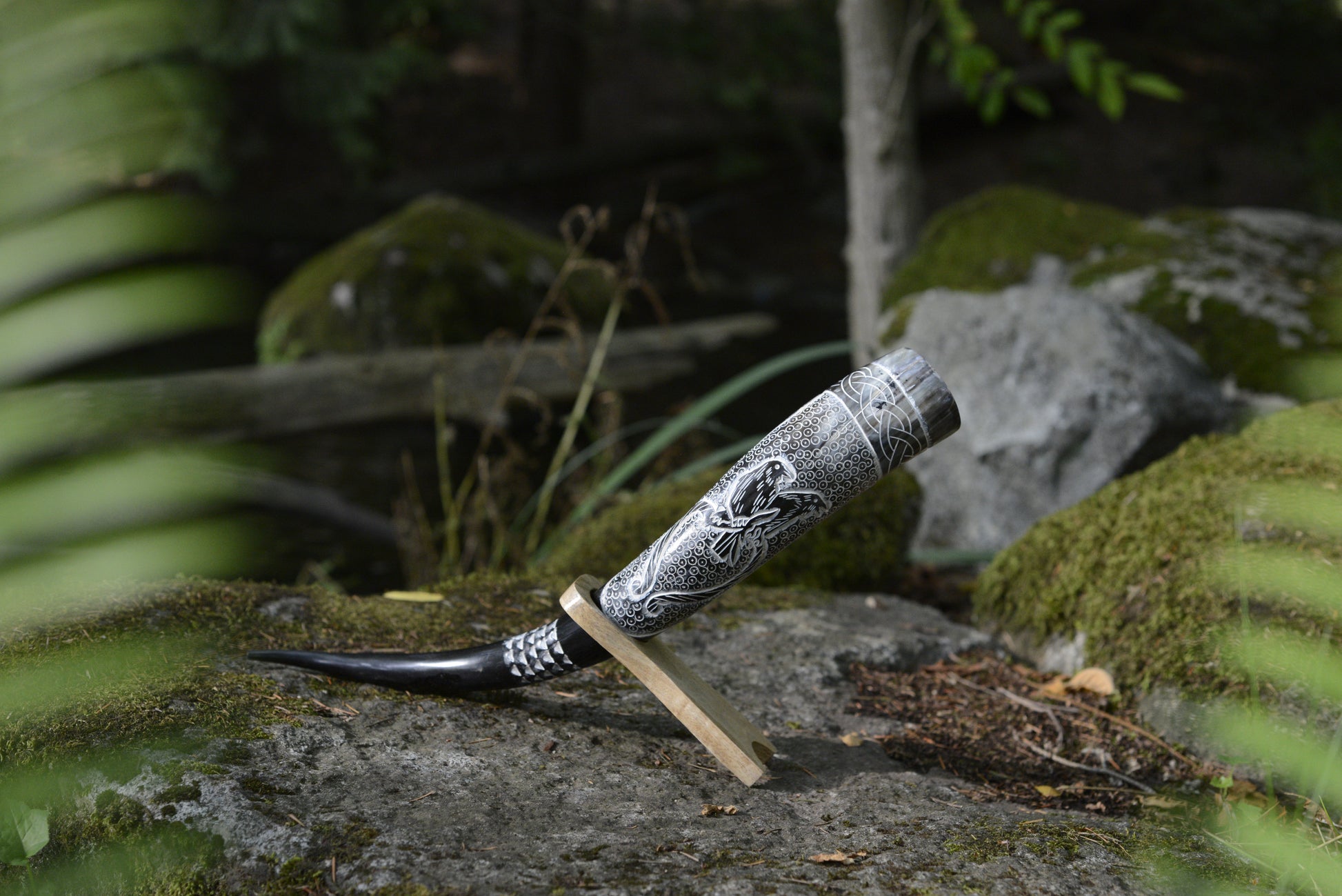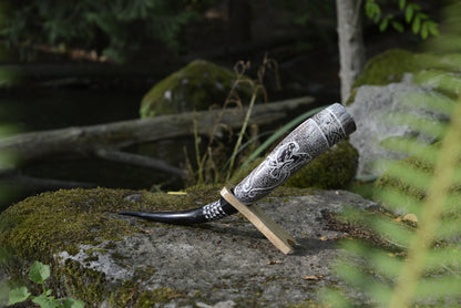 Elevate your special occasions with these magnificent horns, featuring intricate carvings of Viking ships and ravens. They're more than just drinking vessels; they're works of art that enhance your memorable moments.