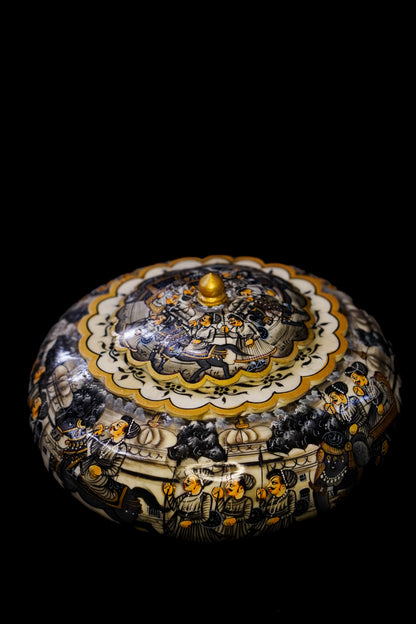 Each box is meticulously handcrafted using traditional techniques, ensuring that no two are exactly alike. The earthy tones and rugged textures of the pottery evoke a sense of connection to the land, while subtle embellishments and motifs hint at the artistic flair of its creators.
