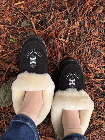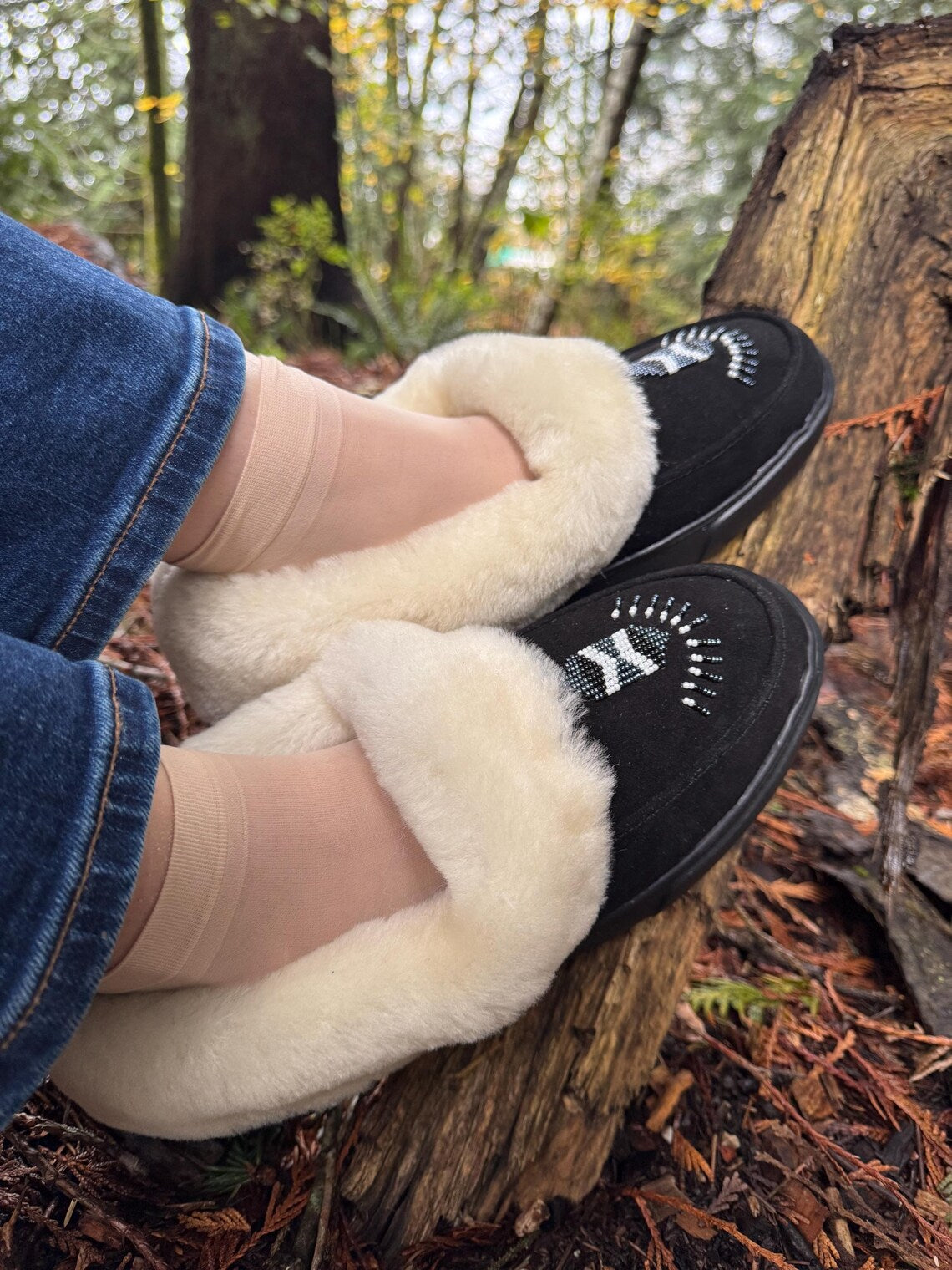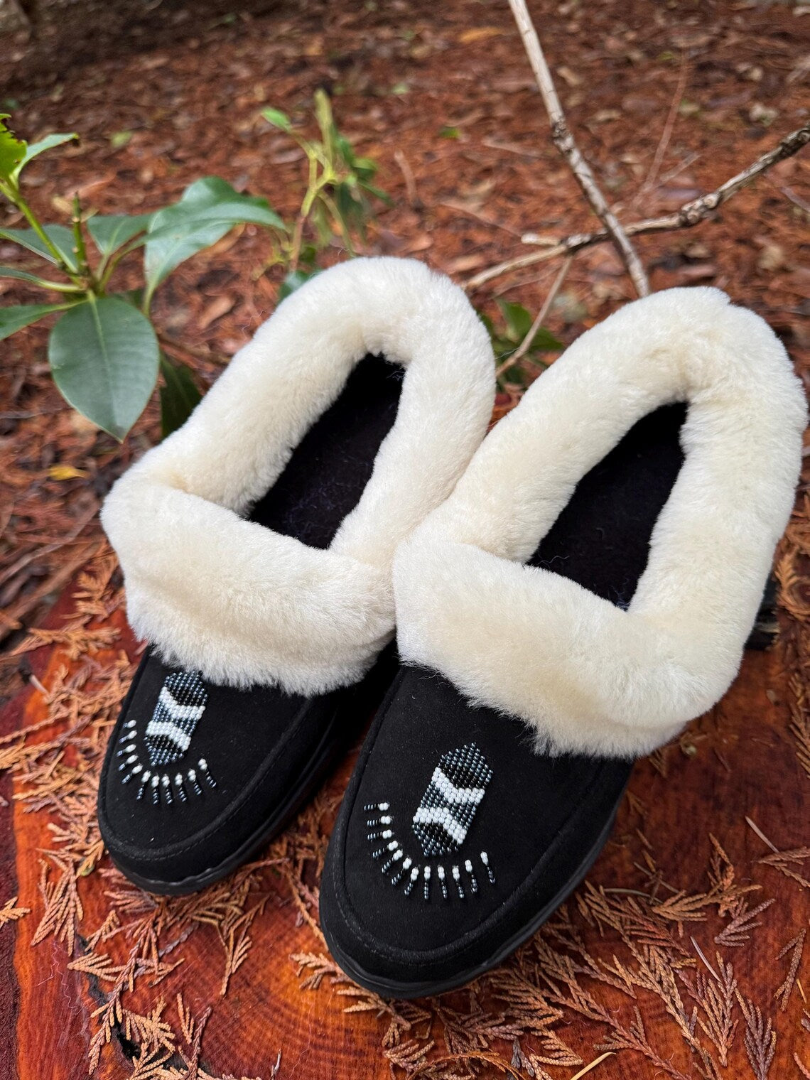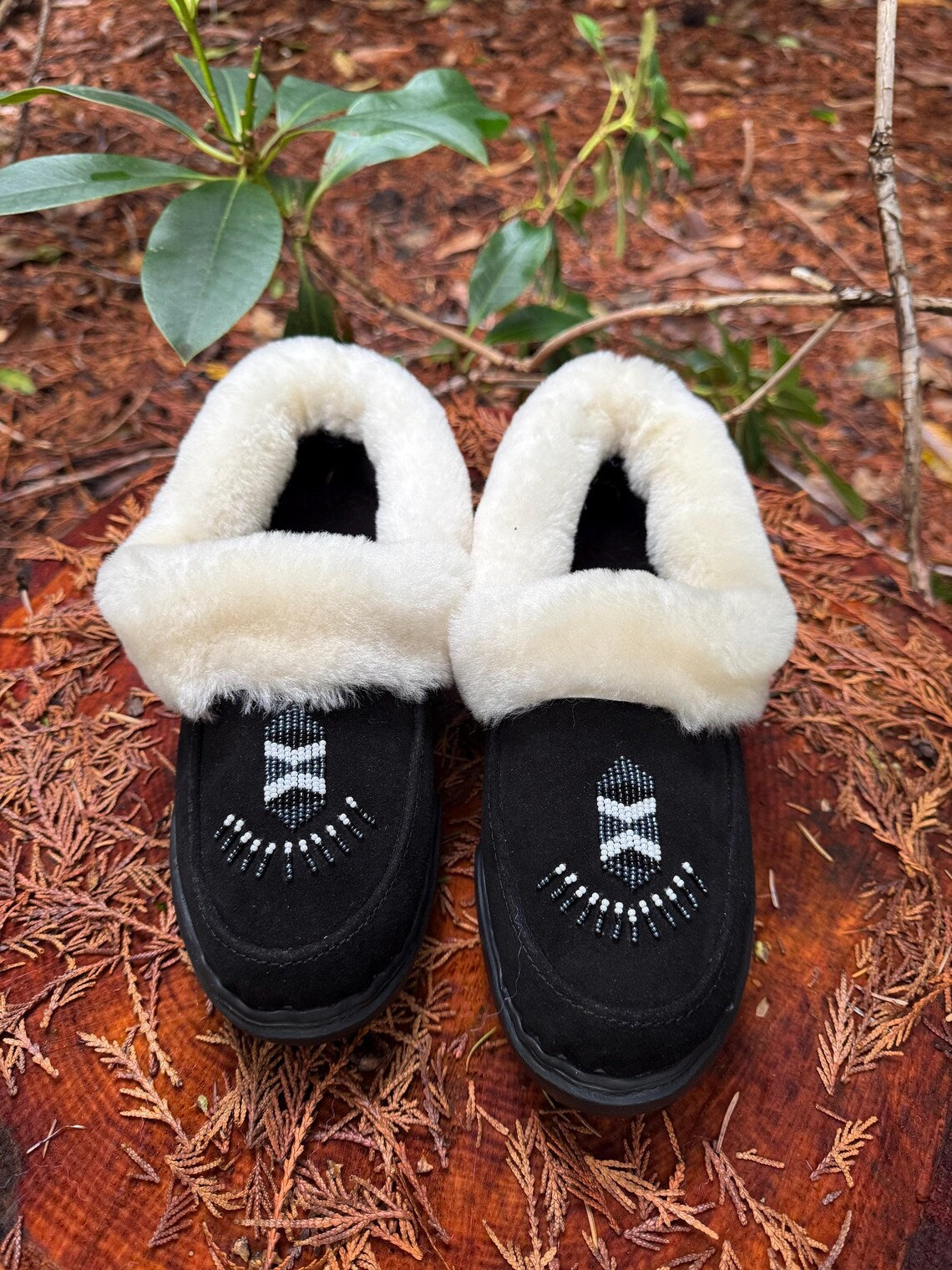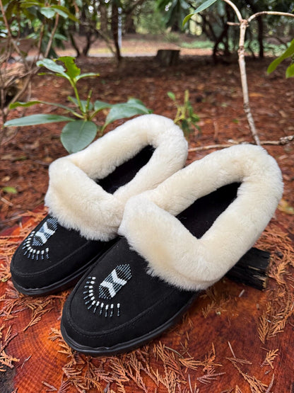 Experience ultimate comfort and timeless style with these Genuine Leather Outdoor Beaded Moccasins with Sheepskin. These genuine leather moccasins combine durability with elegance. Perfect for both indoor relaxation and outdoor, these sheepskin moccasins offer unmatched warmth and versatility. Upgrade your footwear collection with these exceptional outdoor moccasins today!