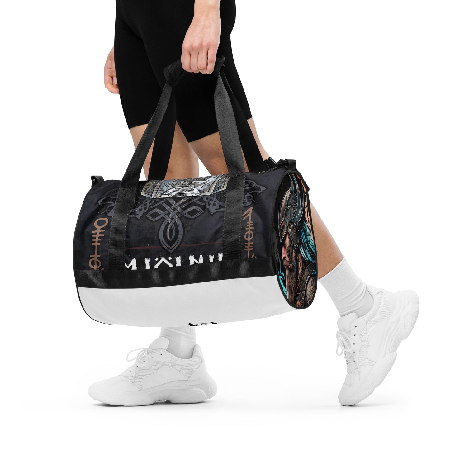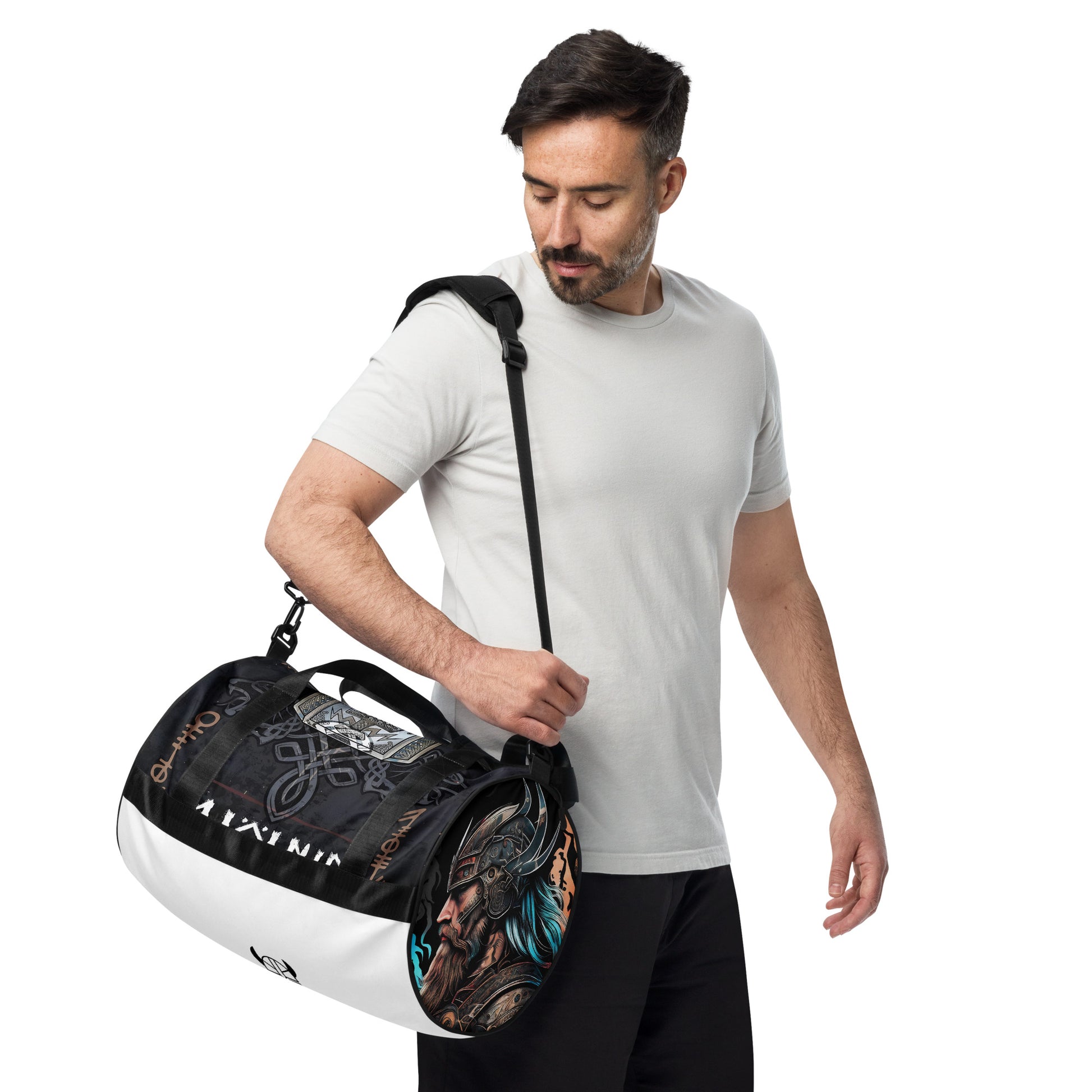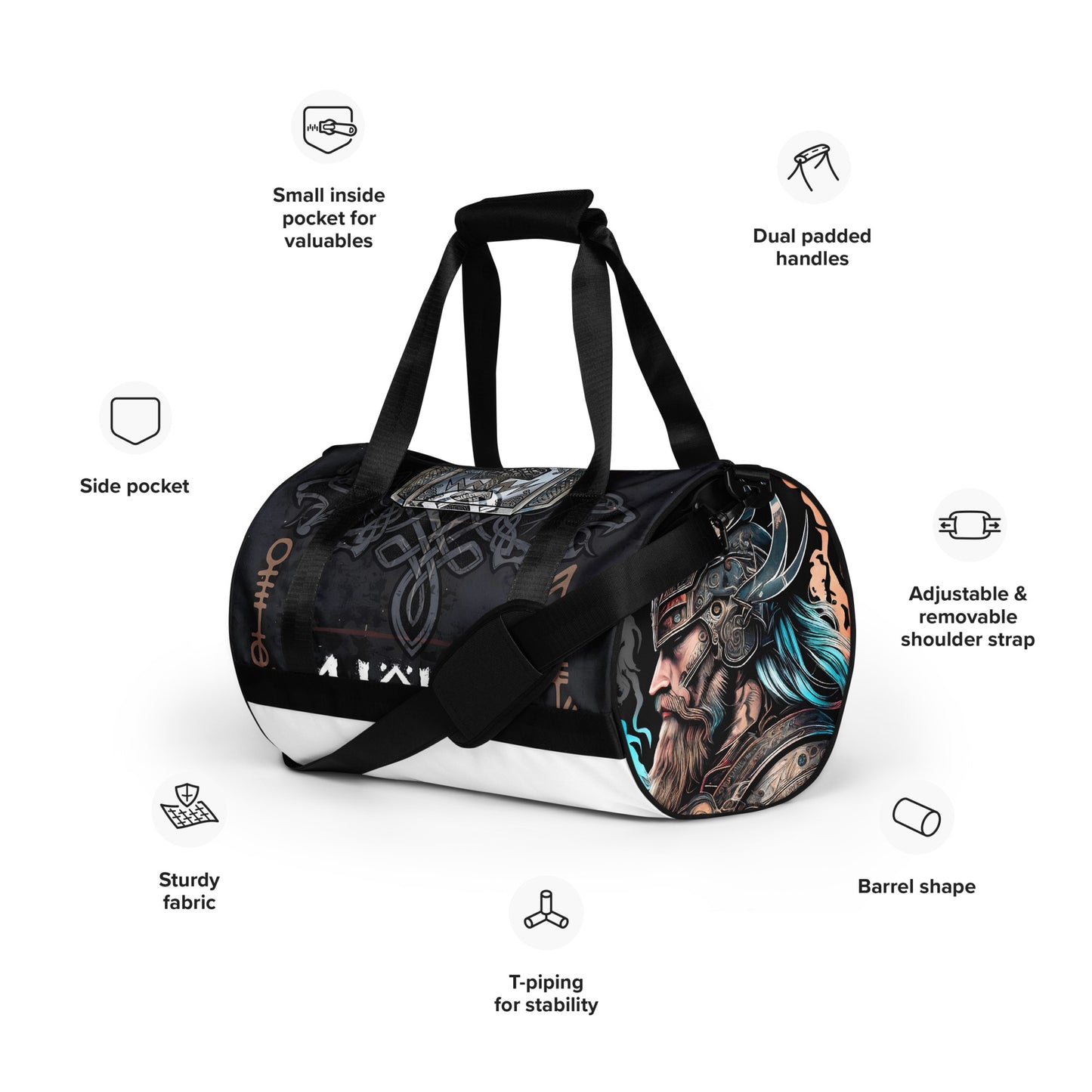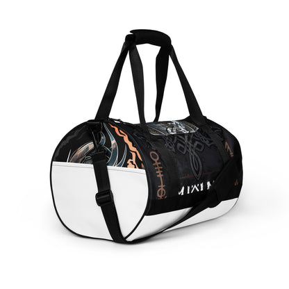 Ready to get your fitness on? Add some punch to pumping iron with this all-over print gym bag. Made from 100% polyester and sturdy, water-resistant fabric, this bag is fun meets function. And it’s got pockets!
