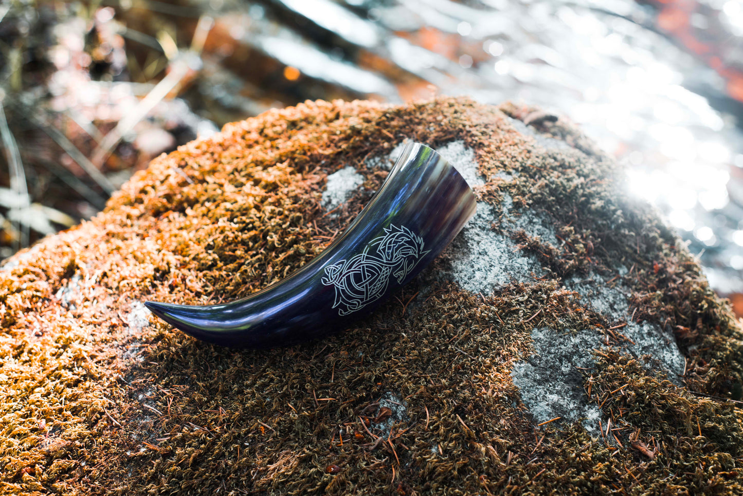 Viking Horn Mug with Norse Dragon Symbol | OnlyViking
